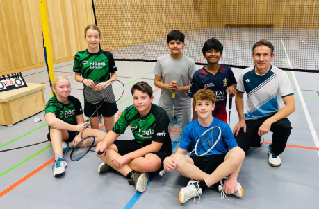 / mit Jana, Leonie, Abdullah, Rutvik, Felix, Vaibhav und Trainer Lars